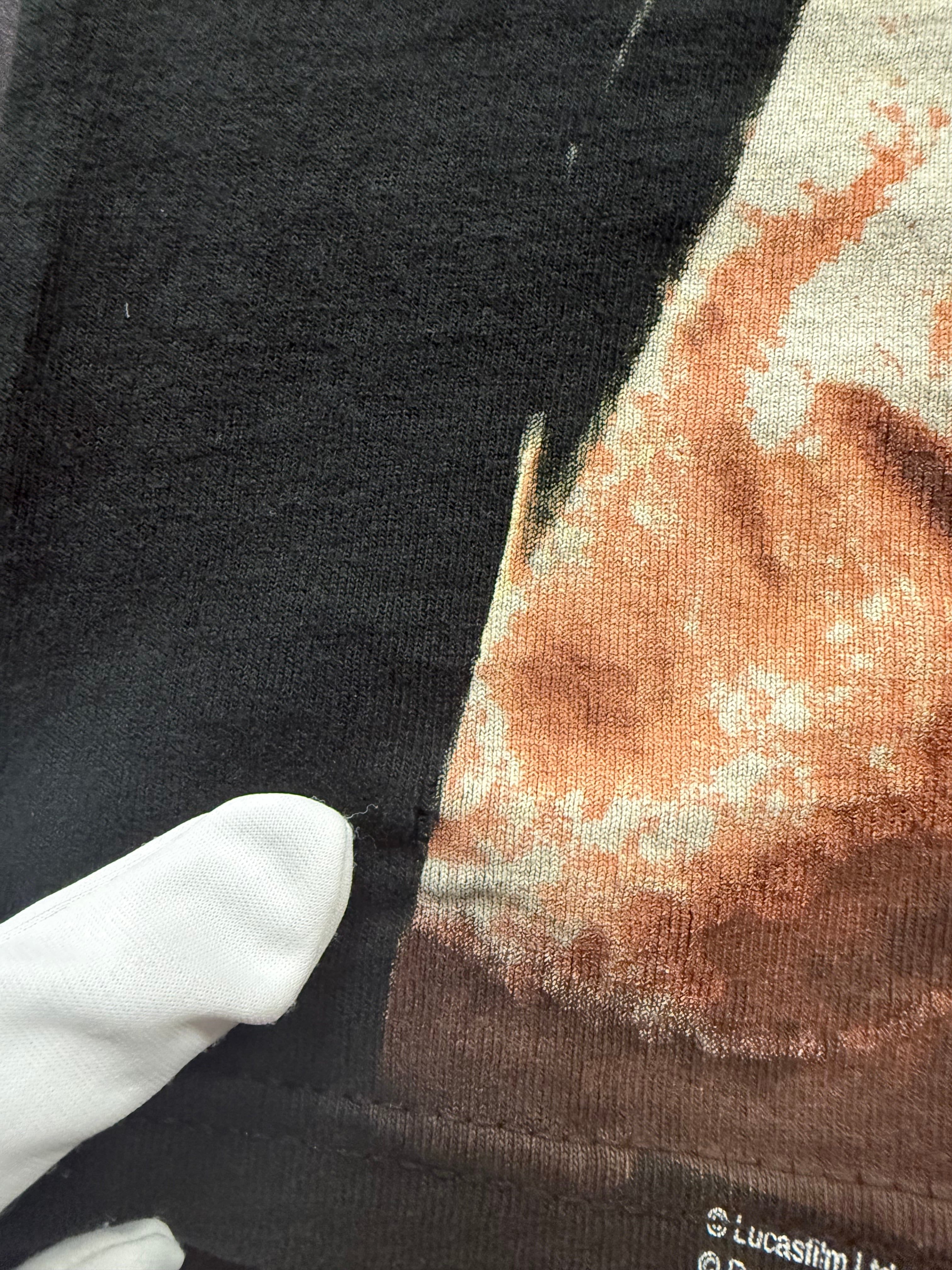 1999年公開「スターウォーズ EPISODE 1 」。その公開に合わせてポテトチップスで有名な「Lays」が製作した1枚。フロントにはアナキン少年、バックにはダースベイダーが全面プリントで印刷され、Tシャツとして豪華な仕様になっています。スターウォーズTシャツの中ではスペシャル品として取り扱われる1枚で、ゴールとして探されている方も多いのではないでしょうか?コンディションも良好、コピーライトもあり。状態含めて探されるとなかなか見つかりませんので是非お探しの方はチェックしてみてください。