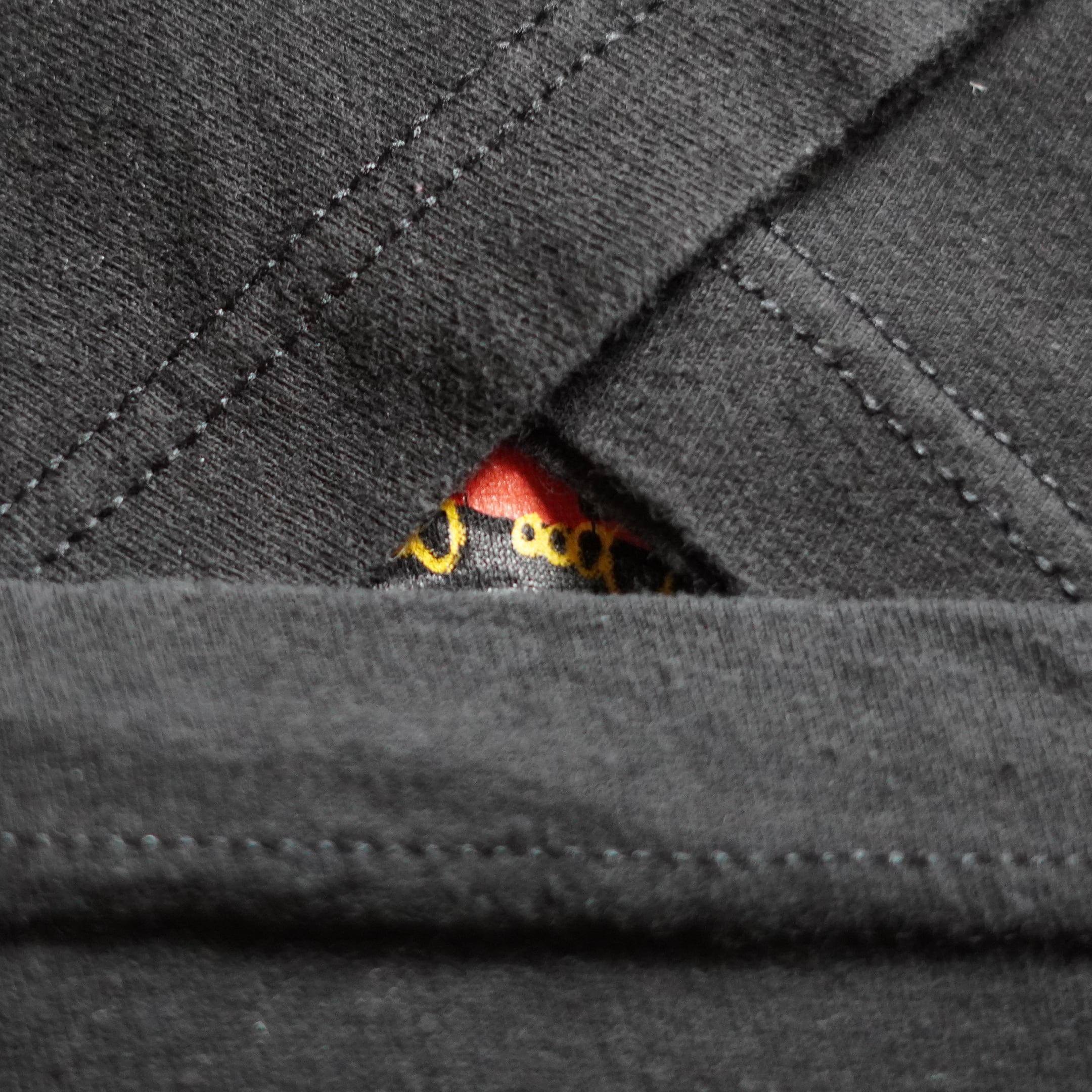 2004年公開「ハウルの動く城」。販売当時は日本未発売の海外公式ライセンス品です。フロントにはカルシファーを題材としたアートワークがプリントされています。近年物のため、プリントタグが採用されています。プリントタグ物の中でもジブリ関連品は「ネクストビンテージ枠」としてコレクター人気の高い1枚です。