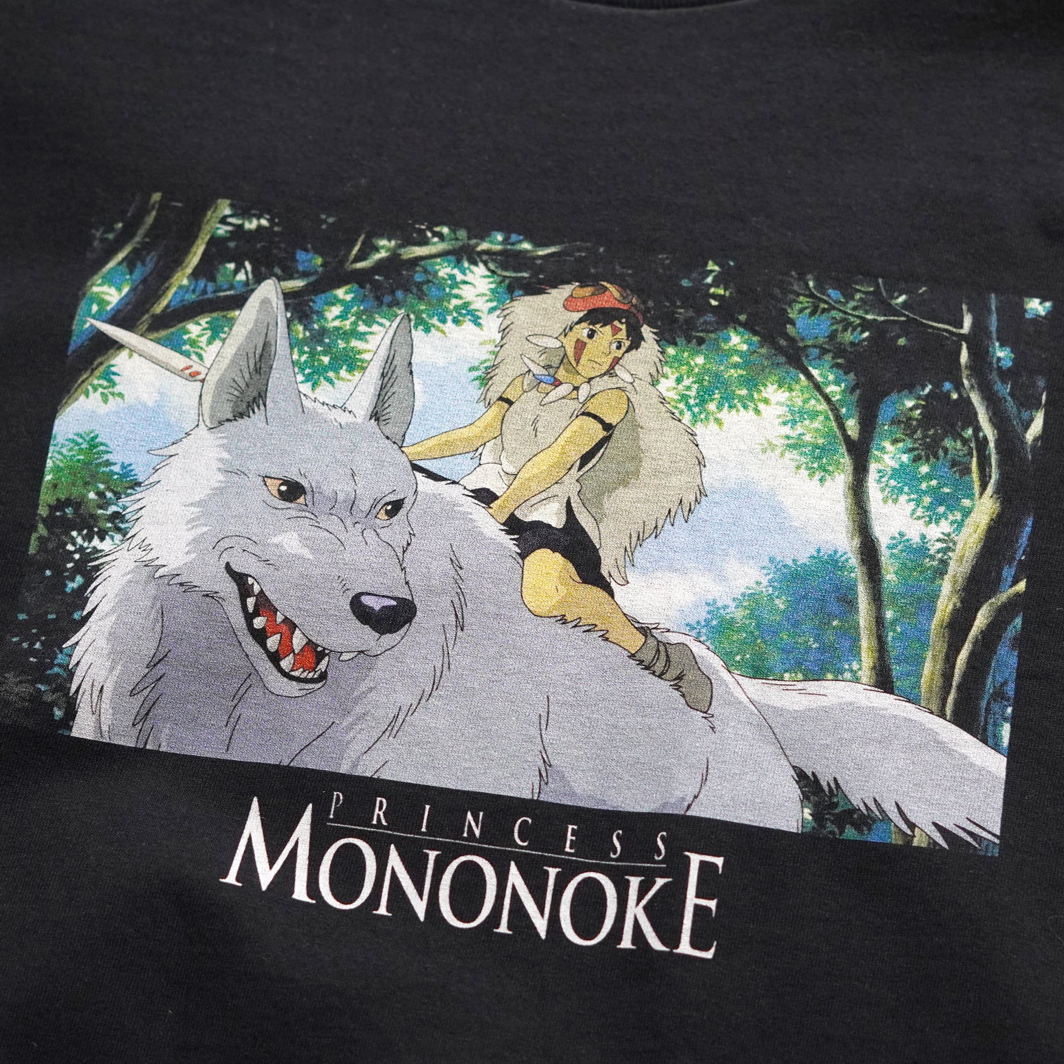 1997年公開「もののけ姫」。販売時は日本未発売の海外公式ライセンス品です。フロントには劇中のワンシーンとタイトルがプリントされています。ジブリにおいてシーンがプリントされるTシャツはこれまで数が少なく、本企画のものが出たときはコレクター間で話題になりました。近年物のため、プリントタグが採用されています。プリントタグ物の中でも「ネクストビンテージ枠」としてコレクターから認知されております。今のうちに抑えて置いておきたい1枚です。