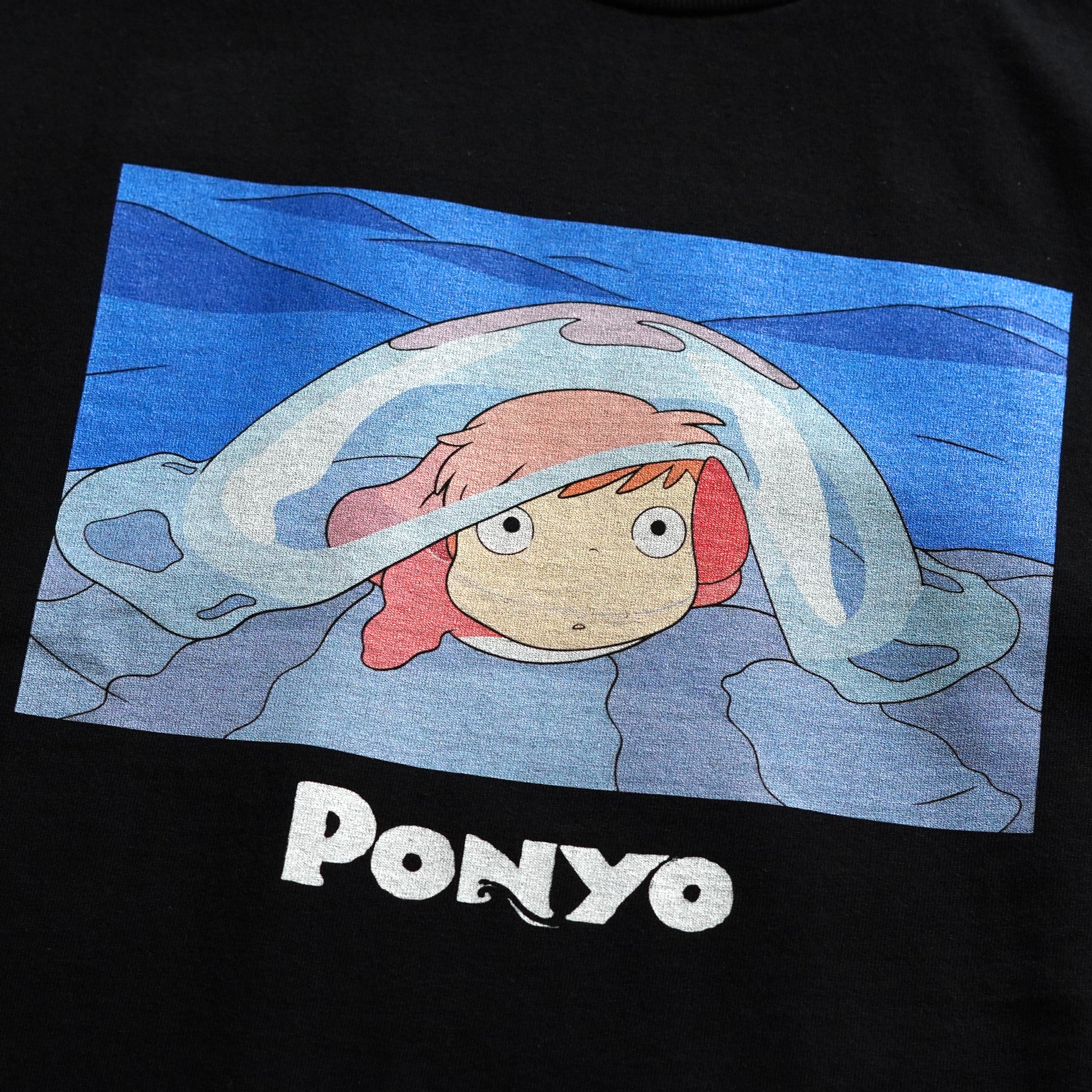 2008年公開「崖の上のポニョ」。販売時は日本未発売の海外公式ライセンス品です。フロントには劇中のワンシーンとタイトルがプリントされています。ジブリにおいてシーンがプリントされるTシャツはこれまで数が少なく、本企画のものが出たときはコレクター間で話題になりました。近年物のため、プリントタグが採用されています。プリントタグ物の中でも「ネクストビンテージ枠」としてコレクターから認知されております。今のうちに抑えて置いておきたい1枚です。