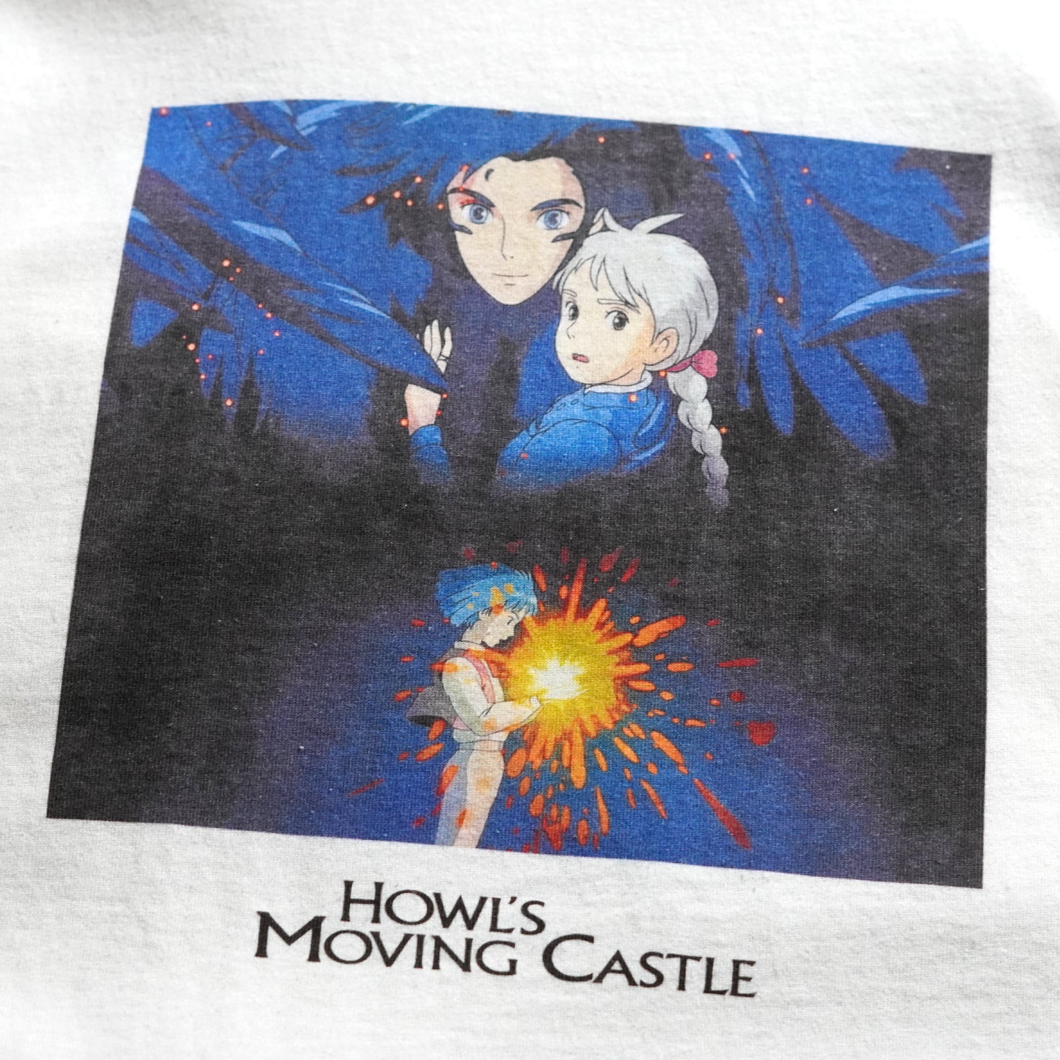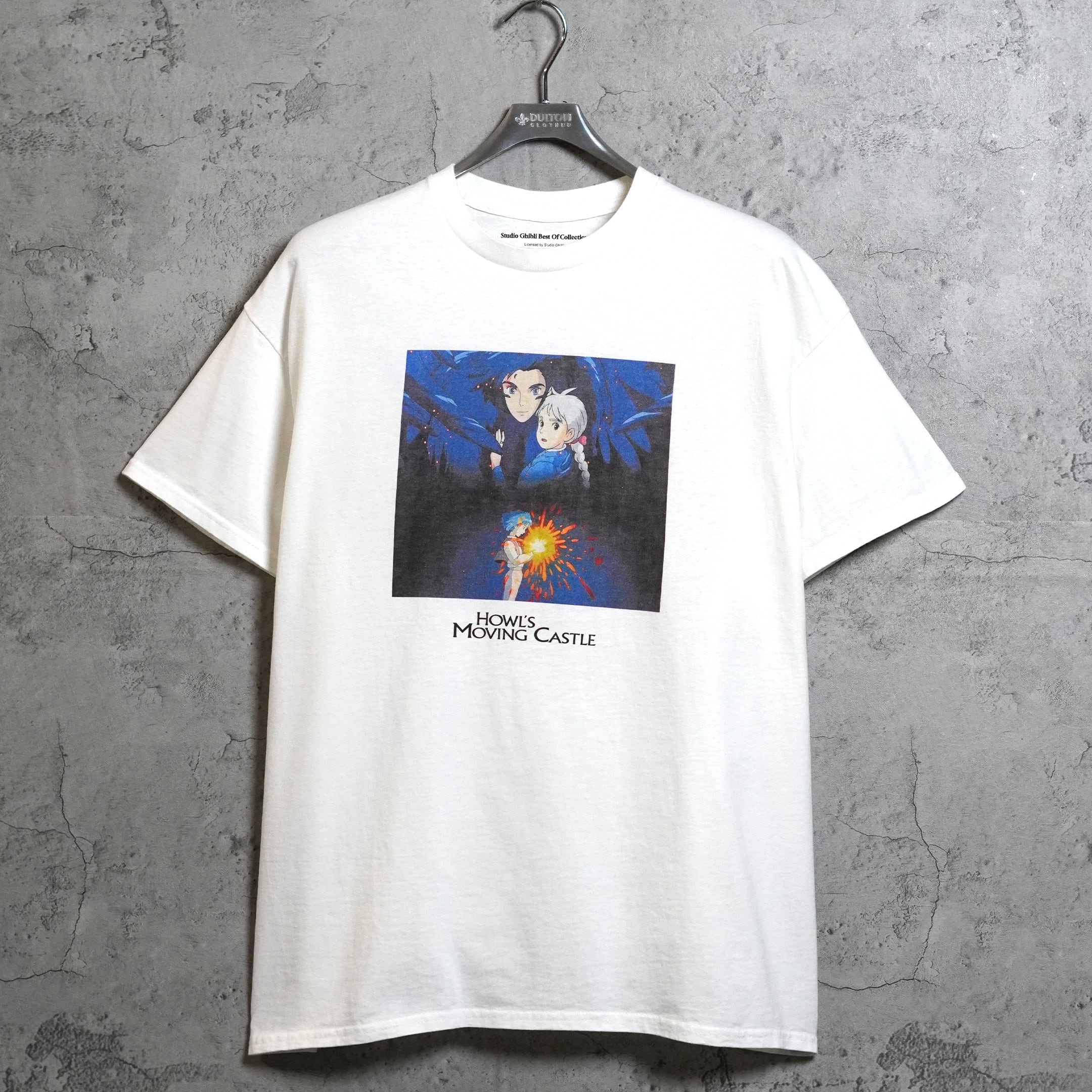 2004年公開「ハウルの動く城」。販売時は日本未発売の海外公式ライセンス品です。フロントには劇中のワンシーンとタイトルがプリントされています。ジブリにおいてシーンがプリントされるTシャツはこれまで数が少なく、本企画のものが出たときはコレクター間で話題になりました。近年物のため、プリントタグが採用されています。プリントタグ物の中でも「ネクストビンテージ枠」としてコレクターから認知されております。今のうちに抑えて置いておきたい1枚です。