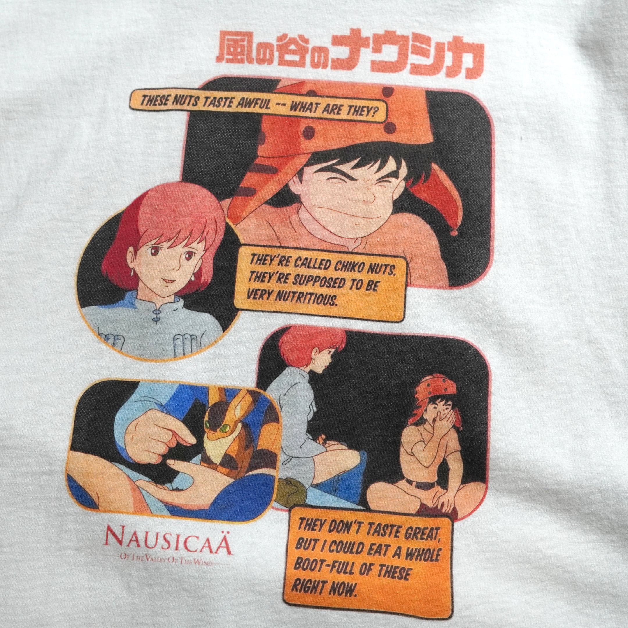 1984年公開「風の谷のナウシカ」。販売時は日本未発売の海外公式ライセンス品です。フロントには劇中のワンシーンとタイトルがプリントされています。近年物のため、プリントタグが採用されています。プリントタグ物の中でも「ネクストビンテージ枠」としてコレクターから認知されております。今のうちに抑えて置いておきたい1枚です。