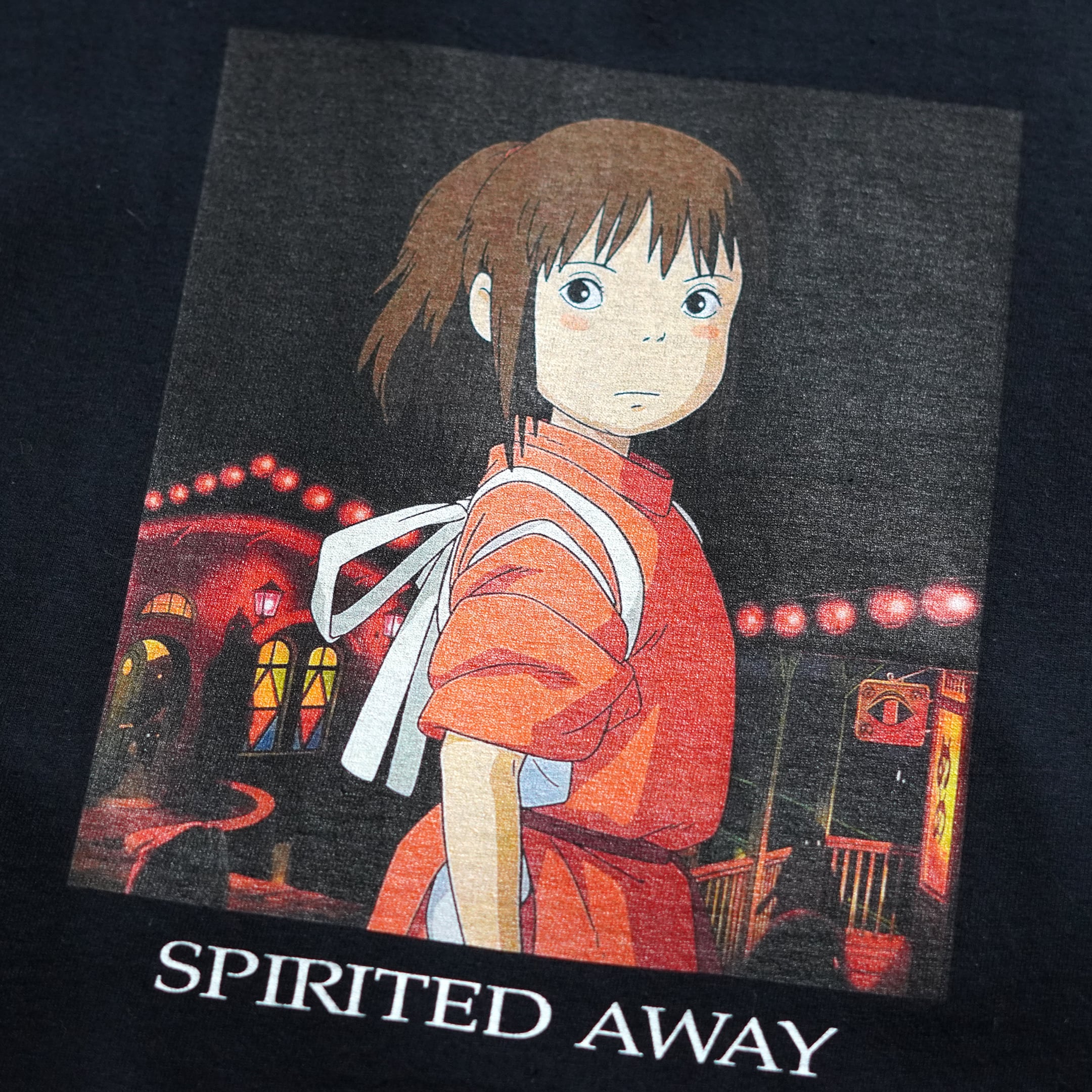 2001年公開「千と千尋の神隠し」。販売時は日本未発売の海外公式ライセンス品です。フロントには劇中のワンシーンとタイトルがプリントされています。ジブリにおいてシーンがプリントされるTシャツはこれまで数が少なく、本企画のものが出たときはコレクター間で話題になりました。近年物のため、プリントタグが採用されています。プリントタグ物の中でも「ネクストビンテージ枠」としてコレクターから認知されております。今のうちに抑えて置いておきたい1枚です。