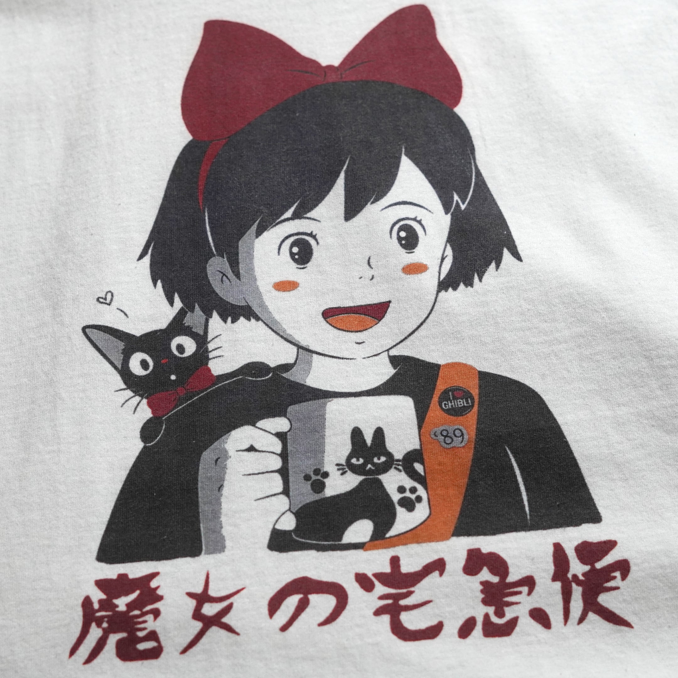 1989年公開「魔女の宅急便」。販売時は日本未発売の海外公式ライセンス品です。フロントには劇中のワンシーンとタイトルがプリントされています。キキをモチーフとしたアートワークがプリントされております。近年物のため、プリントタグが採用されています。プリントタグ物の中でも「ネクストビンテージ枠」としてコレクターから認知されております。