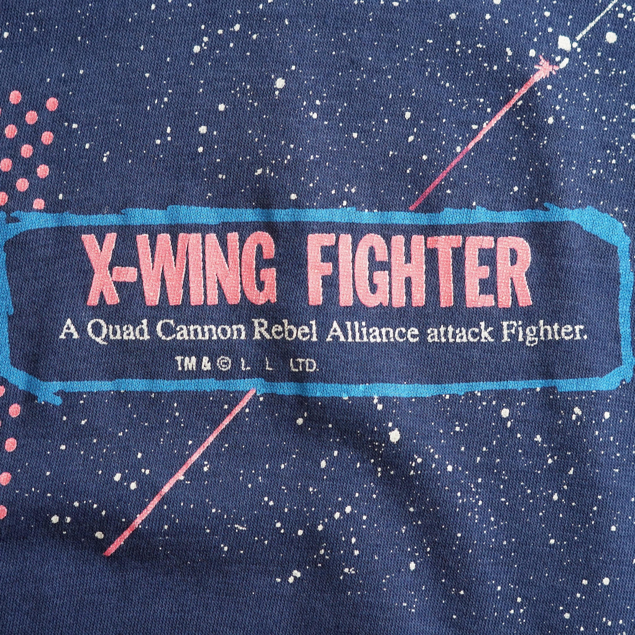 1987年開業「スターツアーズ」今日までパークにて愛されているアトラクションです。特殊効果を担当したILMが製作にかかわり、スターウォーズの映像作品としても高く評価されています。80年代のスターウォーズ関連のTシャツは非常に希少なため、コレクター間で高く評価されています。フロントにはX-wing Fighter、スターツアーズロゴなどがプリントされています。ディズニータグ、コピーライトあり。