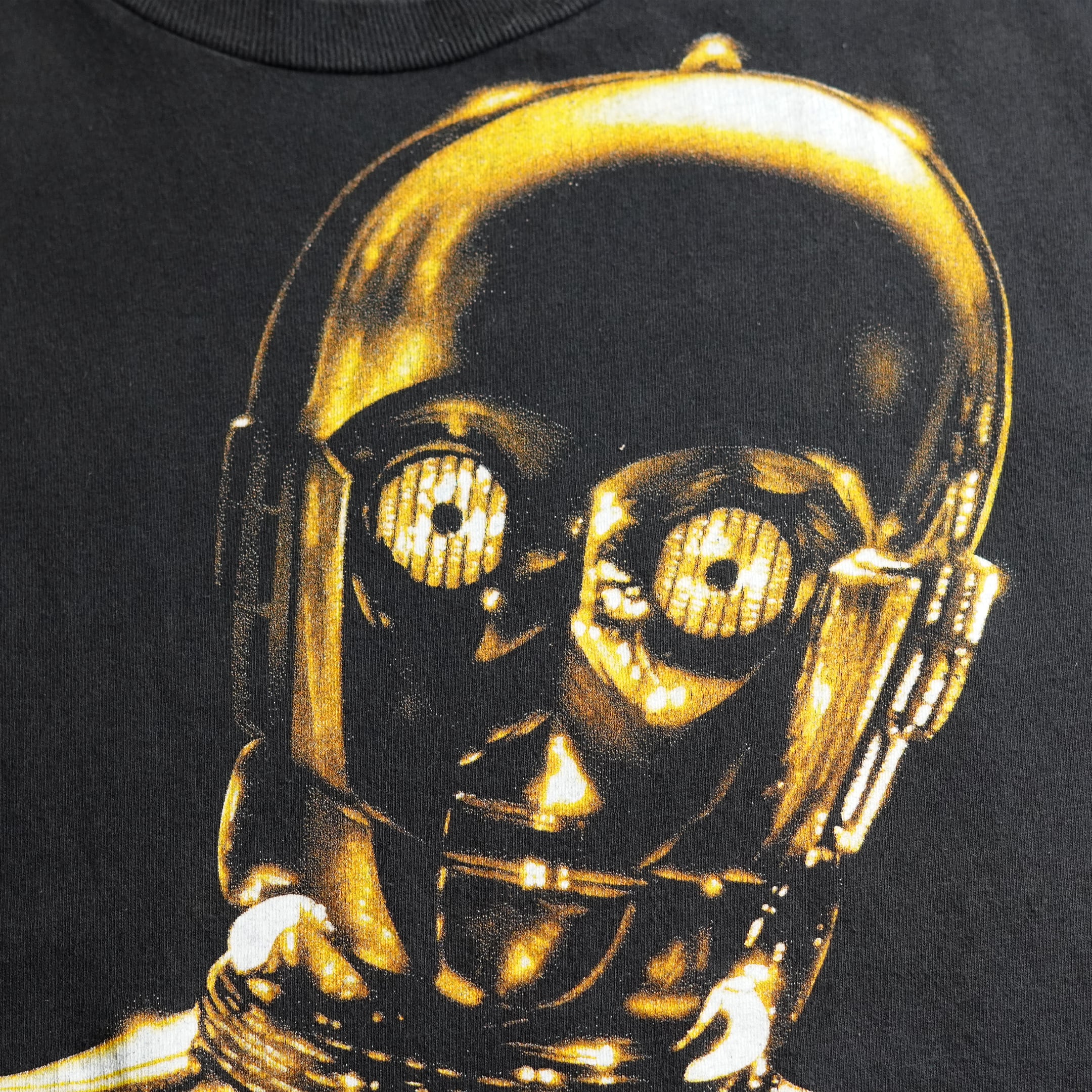 1977-83年に公開された「スター・ウォーズ 旧三部作(エピソード4〜6)」。ブラックボディに金属の光沢をうまくプリントで表現したC3POが大きくプリントされています。VHSの発売があった1995年のコピーライトがついております。