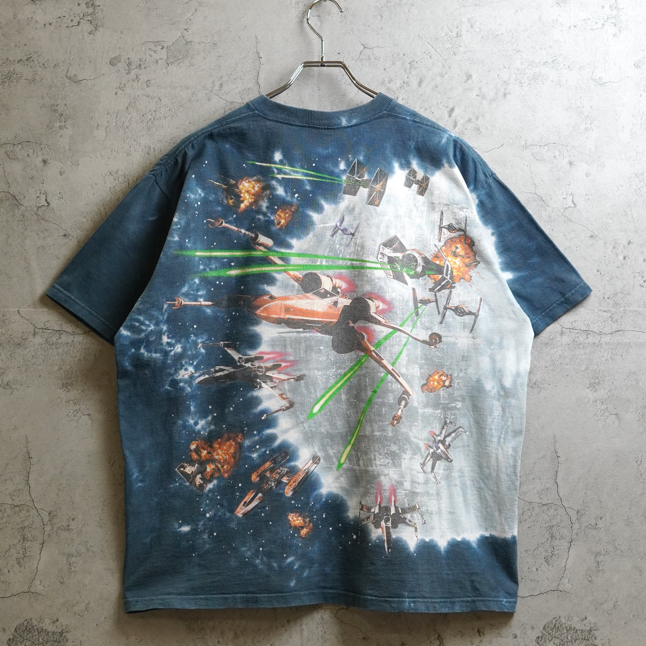 1977-83年に公開された「スター・ウォーズ 旧三部作(エピソード4〜6)」。「Liquid Blue」製作の1枚。タイダイプリントといえばこのブランドを想像する方も多いのではないでしょうか?タイダイに加えて両面AOP(全面プリント)という手の込み具合からポスターやアート作品としても評価の高いシリーズです。特に北米からの評価が高くコレクターの多い1枚です。