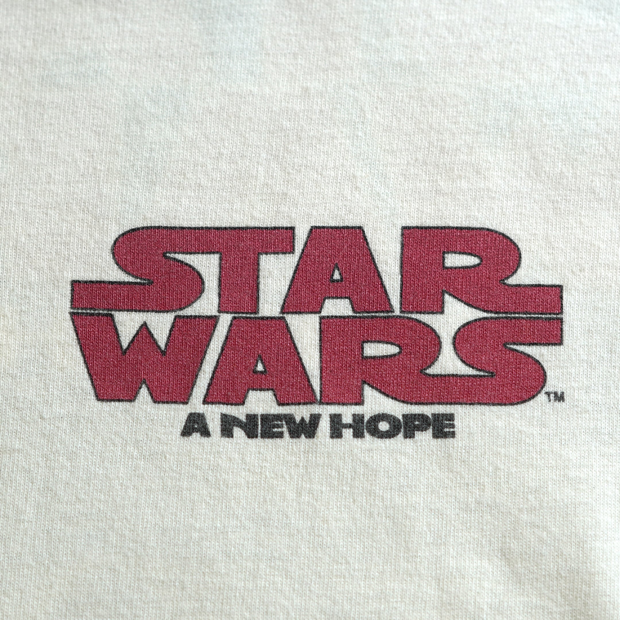 1977-83年に公開された「スター・ウォーズ 旧三部作(エピソード4〜6)」。1995年に「最後のオリジナル版」と称して発売されたVHSのインターナショナル版パッケージがプリントされた1枚。John AlvinがこのVHS向けに起こしたそれぞれの作品に合わせて3つ製作したものの1つで、2021年に行われたオークションでは彼の原画が、62500ドルで落札されています。そういった背景からもアートワークそのものの評価が非常に高く、スターウォーズTの中でも高く評価されているシリーズです。生産ロットにより版の色が異なる場合があり、その差分を観るのも面白いと思います。コピーライトあり。