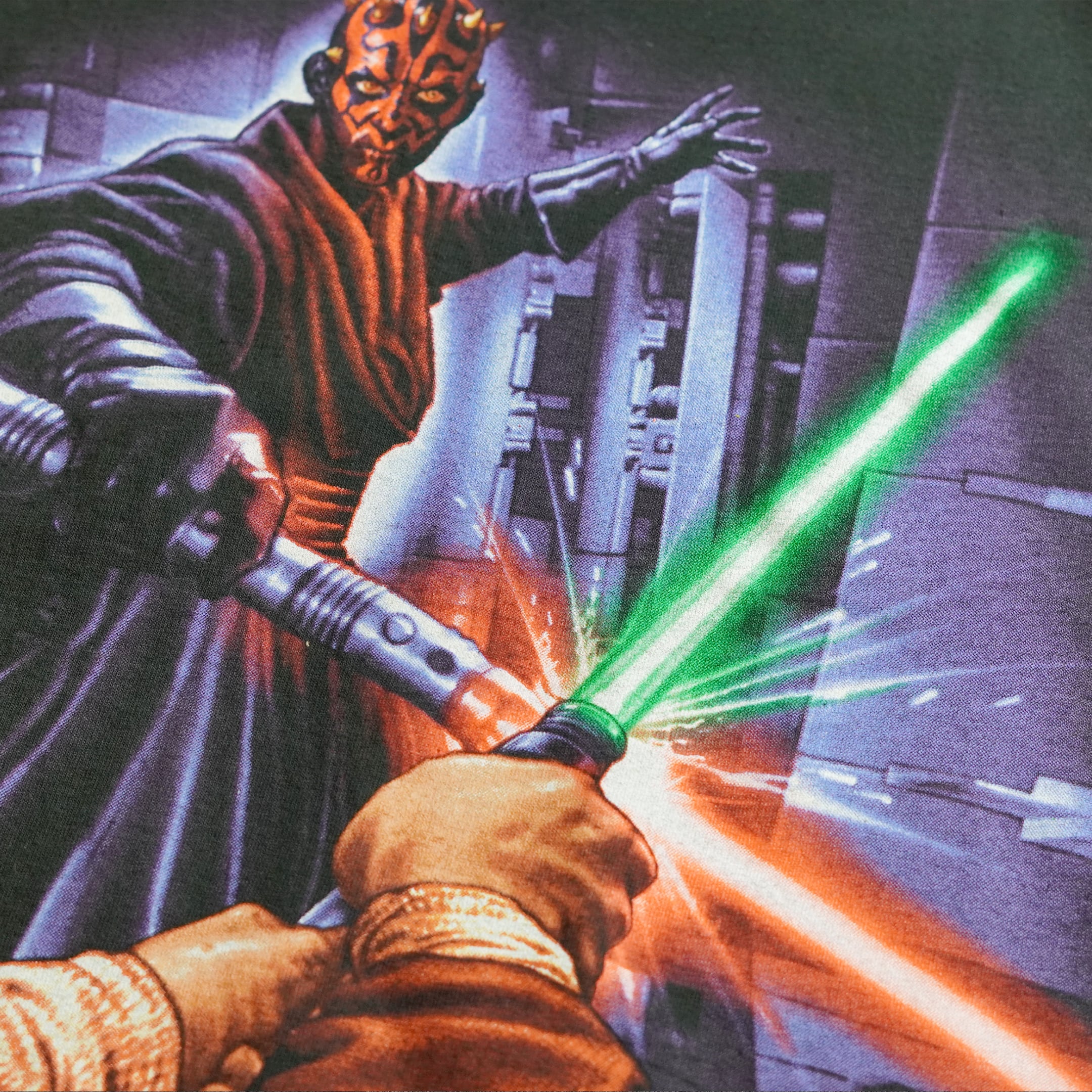 1999年公開「スター・ウォーズ エピソード1/ファントム・メナス」。こちらのLEEタグシリーズは、袖にラバーパッチが付きます。この仕様で複数パターン作られており、コレクター間では「LEEシリーズ」と呼ばれていたりします。スターウォーズTの歴史の中でも極めて特殊な仕様かつプリント品質も高いため、評価の高いシリーズの1つです。