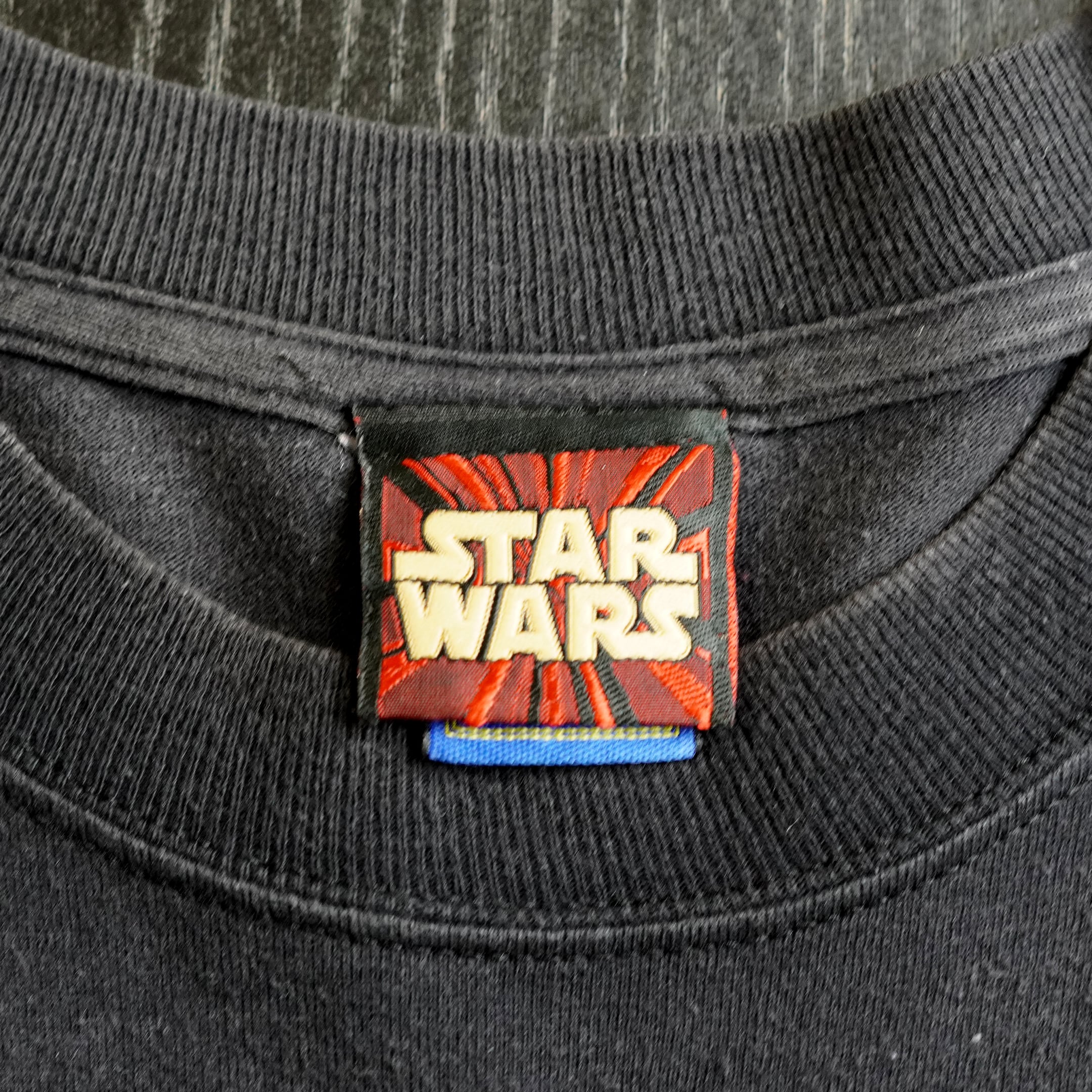 1999年公開「スター・ウォーズ エピソード1/ファントム・メナス」。フロントはブルーで表現されるダースモール大きくプリントされています。赤で表現されることの多いキャラクターのため、比較的珍しい表現の1枚かと思います。スターウォーズタグ付き。