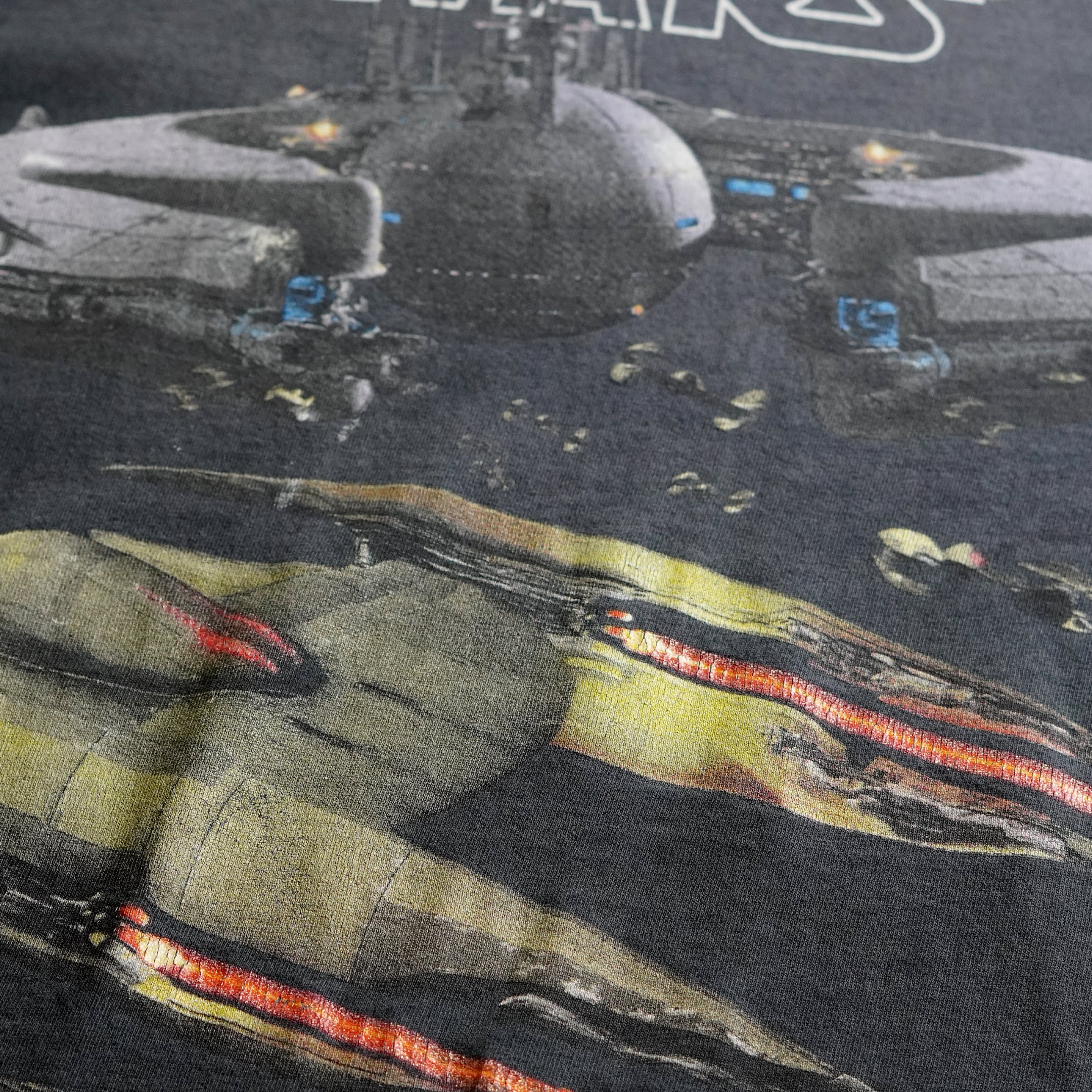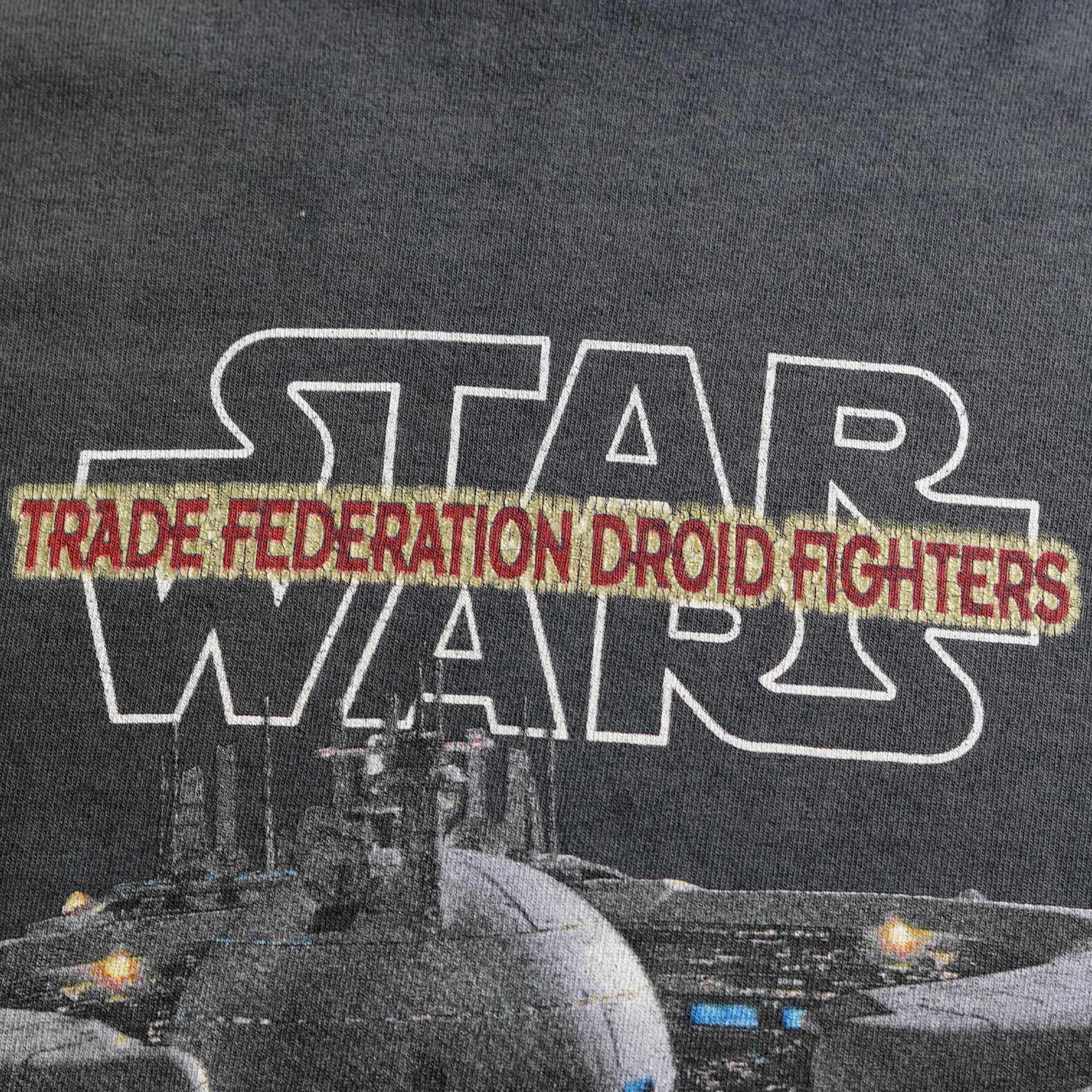 1999年公開「スター・ウォーズ エピソード1/ファントム・メナス」。フロントは通称連合率いるドロイドスターファイターが大きくプリントされています。フェードが出ているのでビンテージT好きの方には刺さる1枚ではないでしょうか?スターウォーズタグ付き。