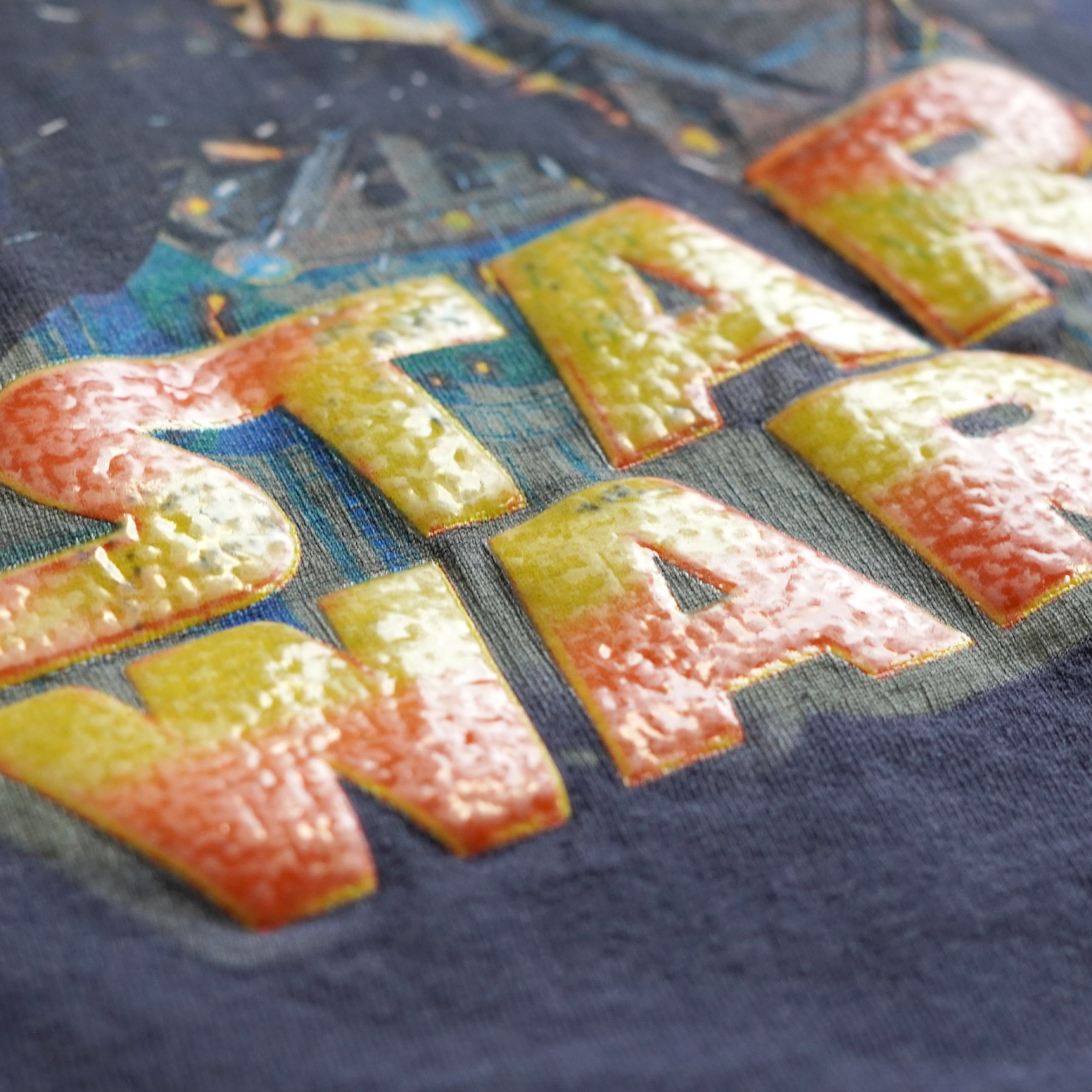 2005年公開「スター・ウォーズ エピソード3/シスの復讐」。フロントにはオビワンとアナキンの決闘シーンが大きくプリントされています。ロゴ部分にはラバープリントが施されており珍しい使用可と思います。