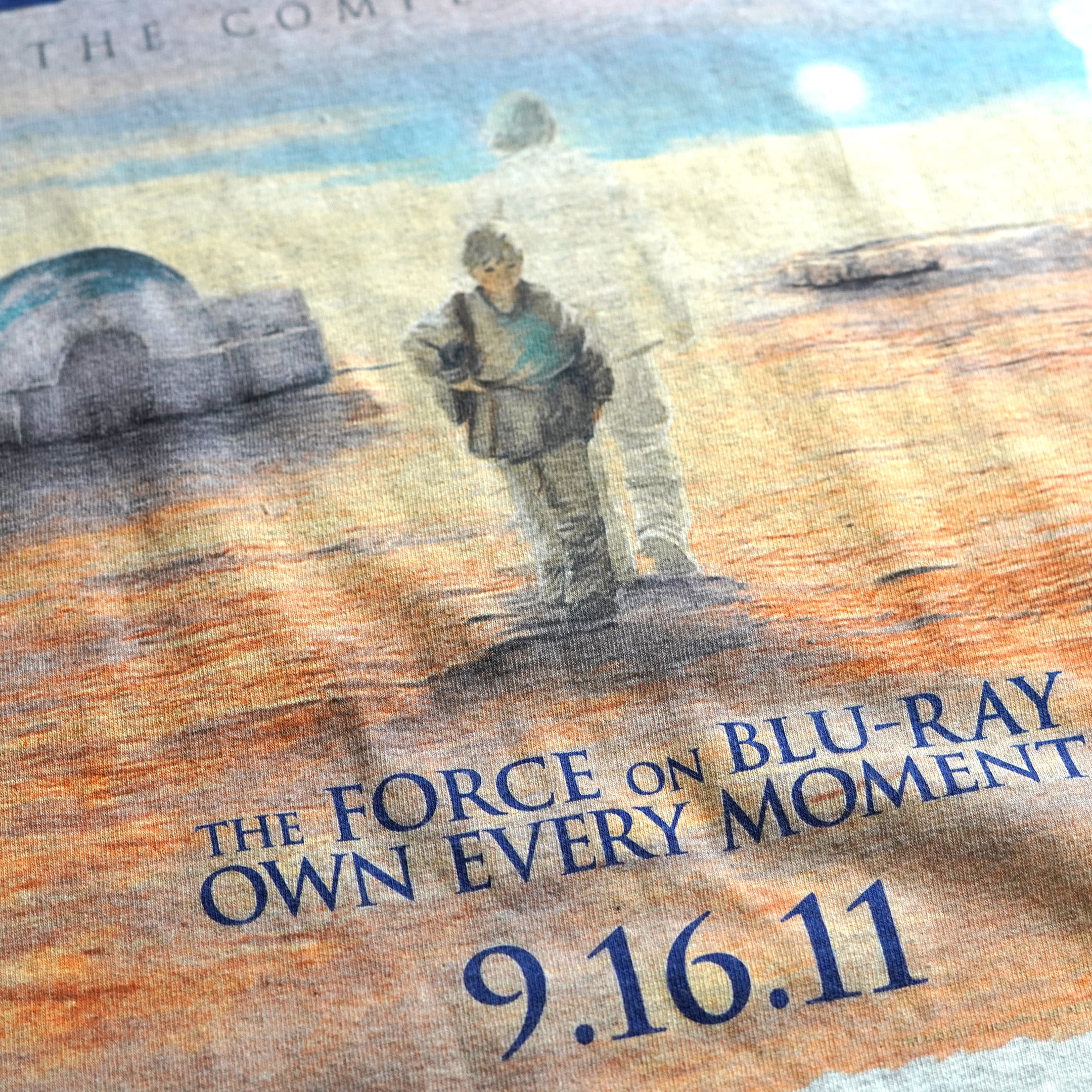 2011年に発売された「スター・ウォーズ コンプリート・サーガ」。そのプロモ用に作られた1枚です。フロントにはstarwarロゴとバックにはアナキン少年とルークがデザインされています。エピソード1とエピソード4をオーバーラップさせたデザインは非常に希少でこのような企画でしか作りえなかったデザインといえます。発売日も記載されており、1997年の特別編以降で、高画質化がまとめて行われたということもあり、スターウォーズファンとしては比較的重要な日でした。