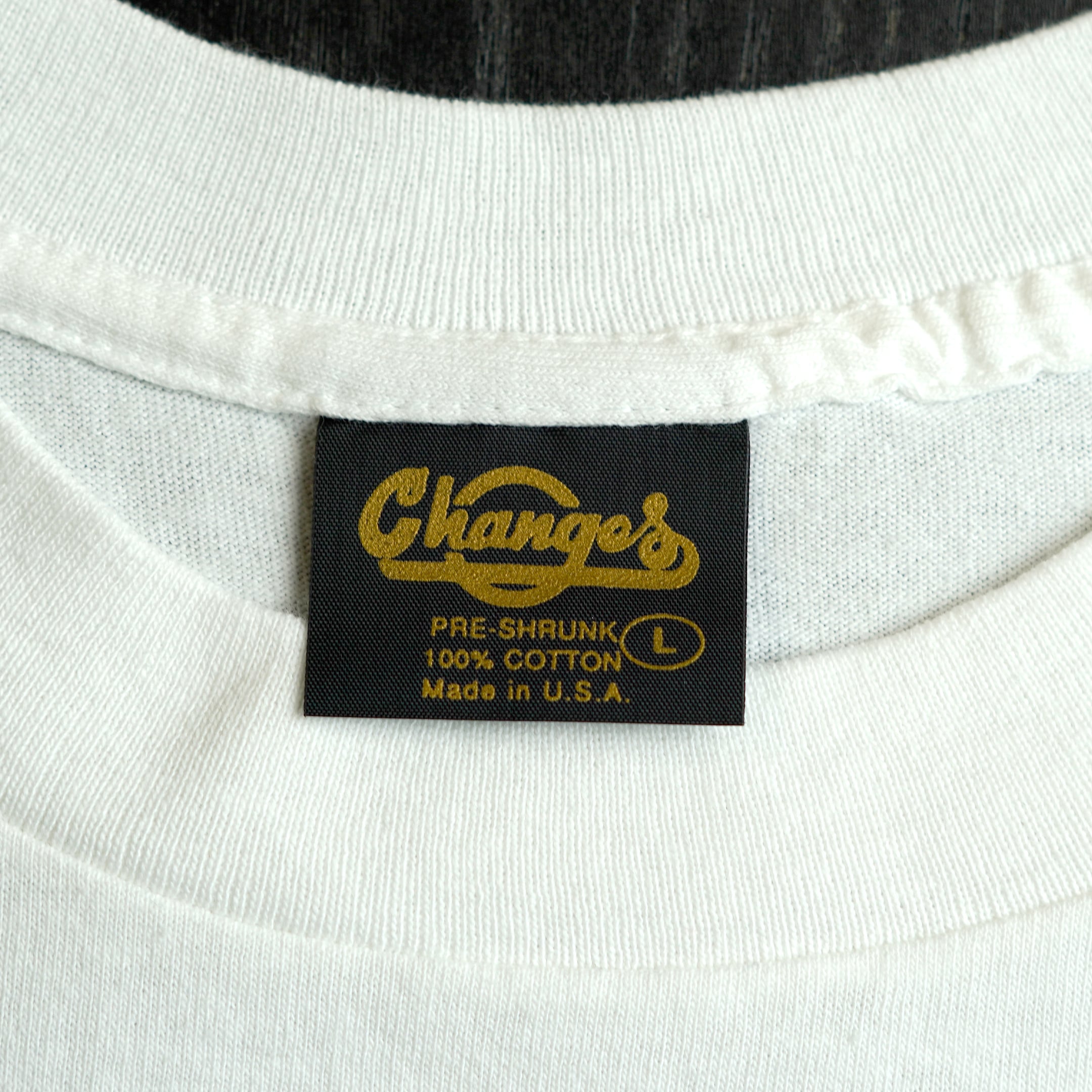 1977-83年に公開された「スター・ウォーズ 旧三部作(エピソード4〜6)」。こちらはChangesの企画で全7枚作られたものの1つです。デザイナー「Willium Harrison」氏によってデザインされました。Changes独自の企画だったため、他社でのデザインの流用が見られず市場流通量が極めて少ないです。特に全種揃えると、コレクター間でも一目置かれるレベルです。フロントにはチューバッカのビッグフェイスがプリントされています。