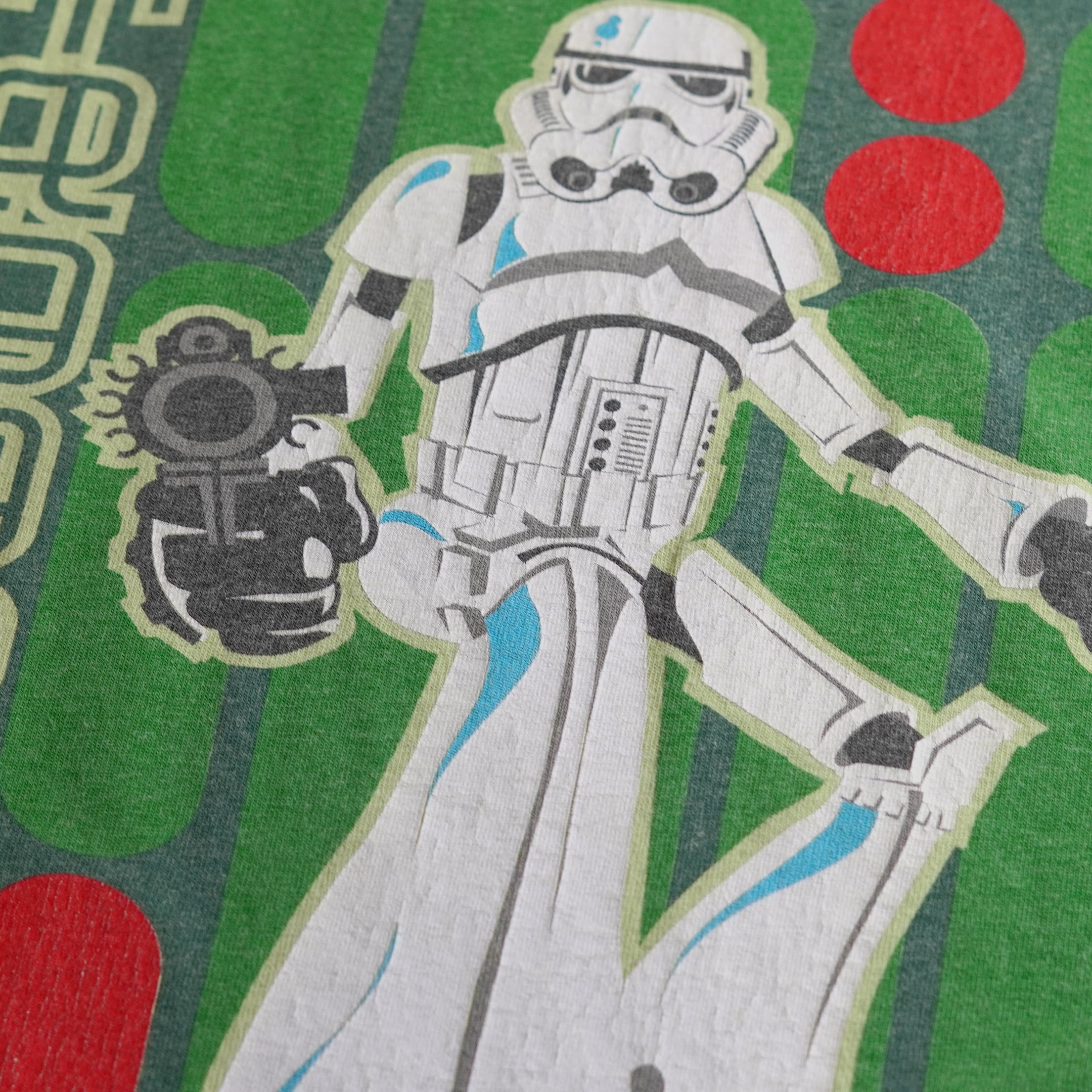 1977-83年に公開された「スター・ウォーズ 旧三部作(エピソード4〜6)」。フロントには胸ロゴ、バックにはポップなデザインのトルーパーが大きくプリントされています。こちらのシリーズはレイアなど他のキャラクターも存在しますが、初見の方も多いデザインかと思います。