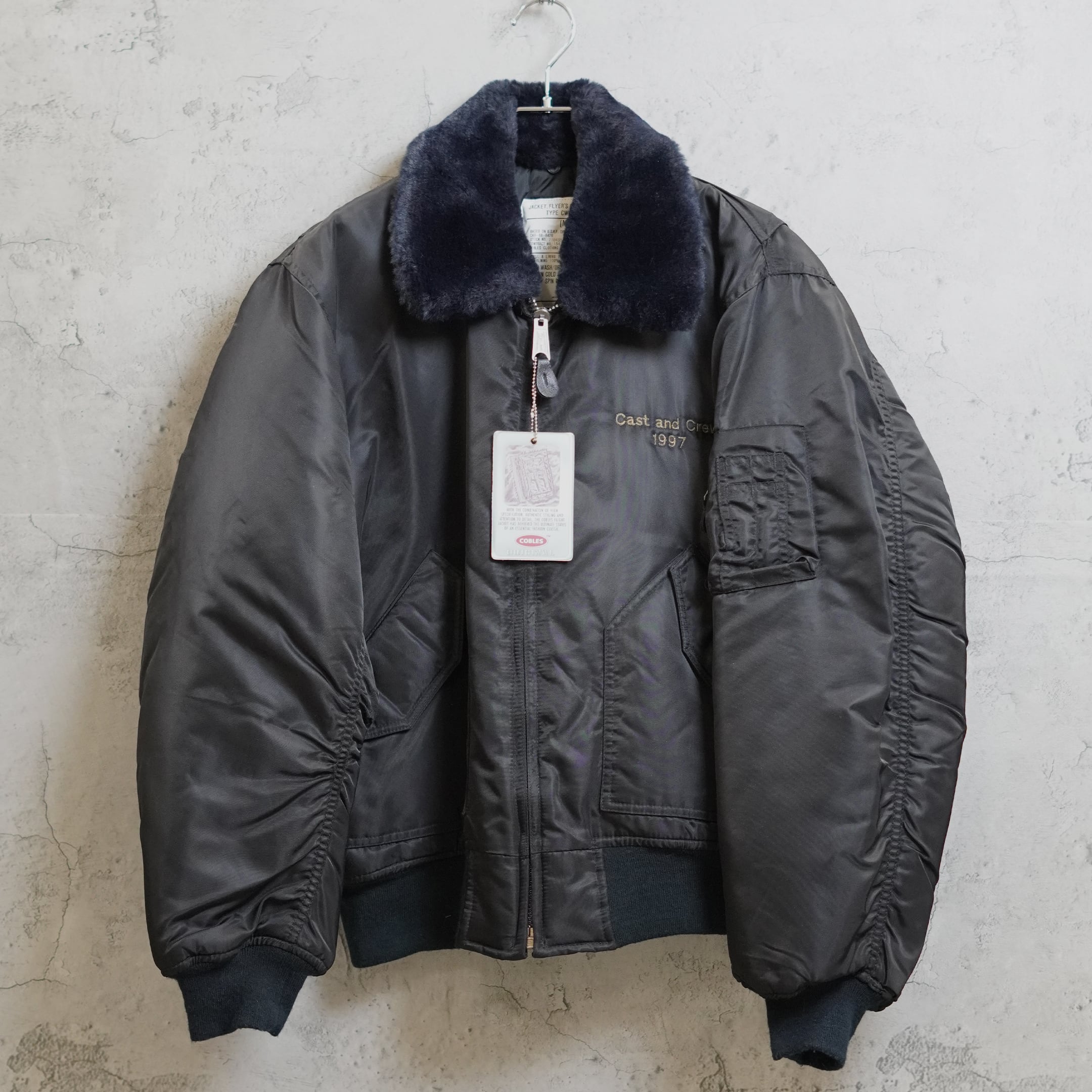 ボディに使用されている「COBLES」はイギリスのメーカーで現地にて調達したジャケットを使用してクルー向けのジャケットが製作された経緯が読み取れます。襟のファーは取り外し可能で様々な着こなしをお楽しみいただけます。